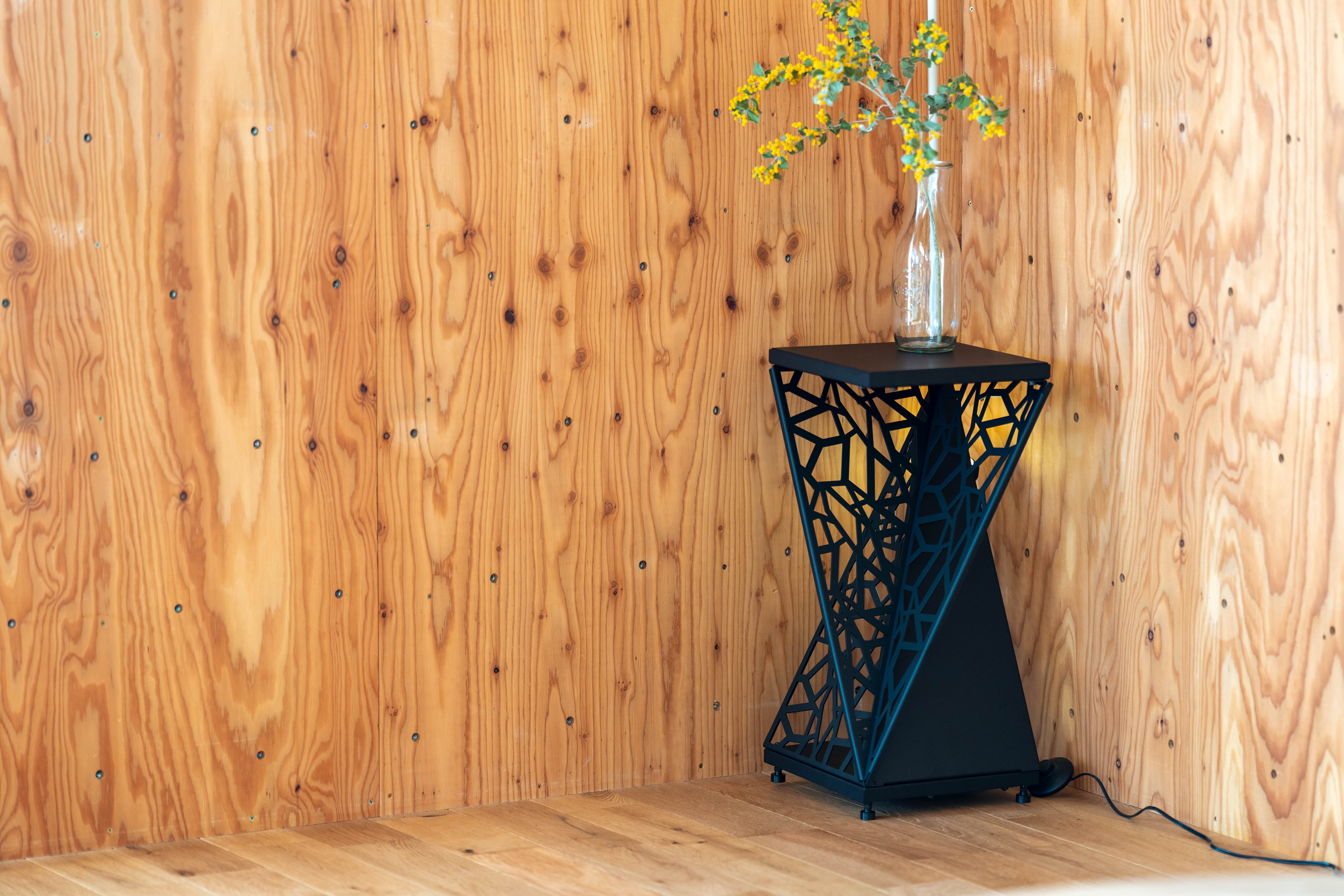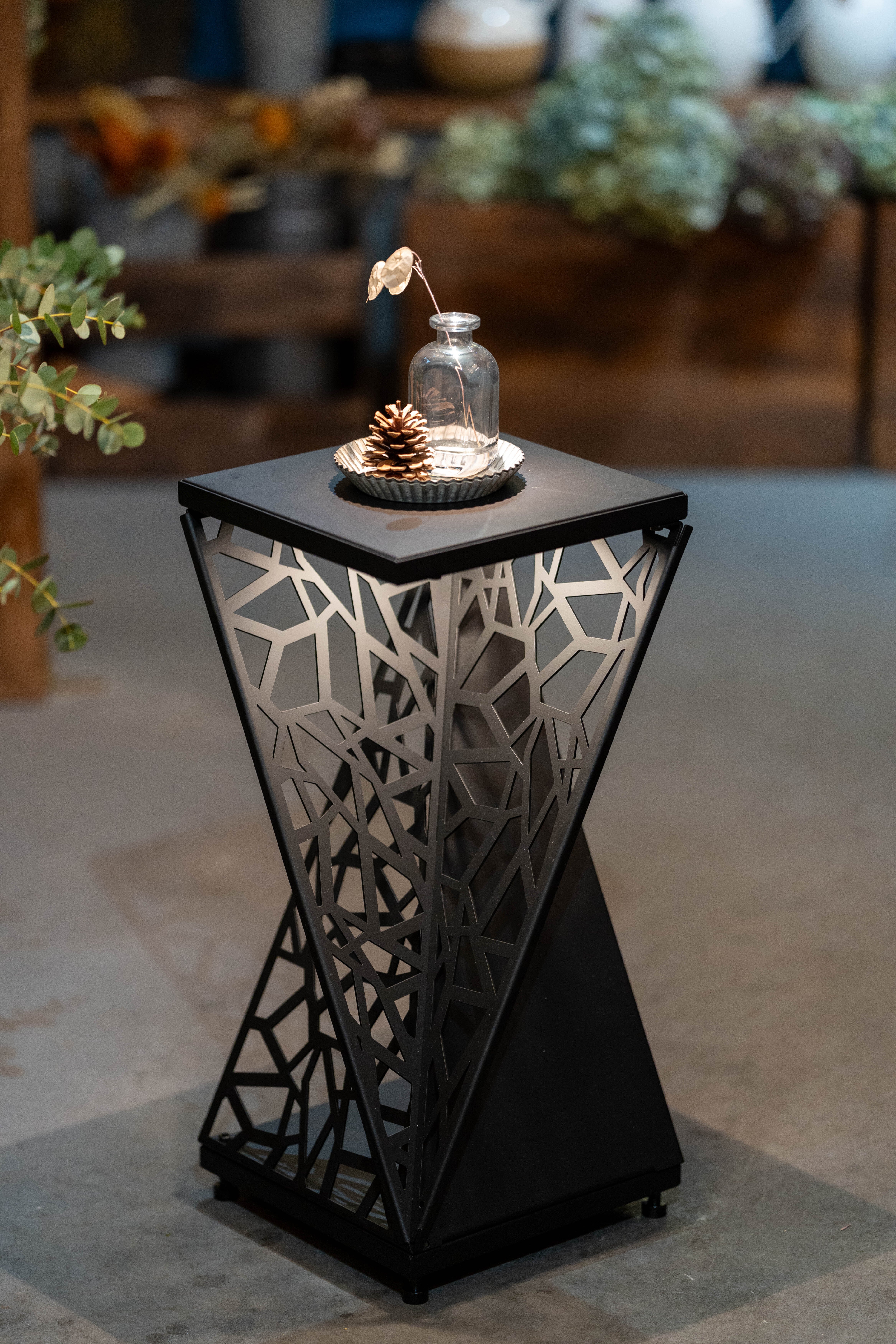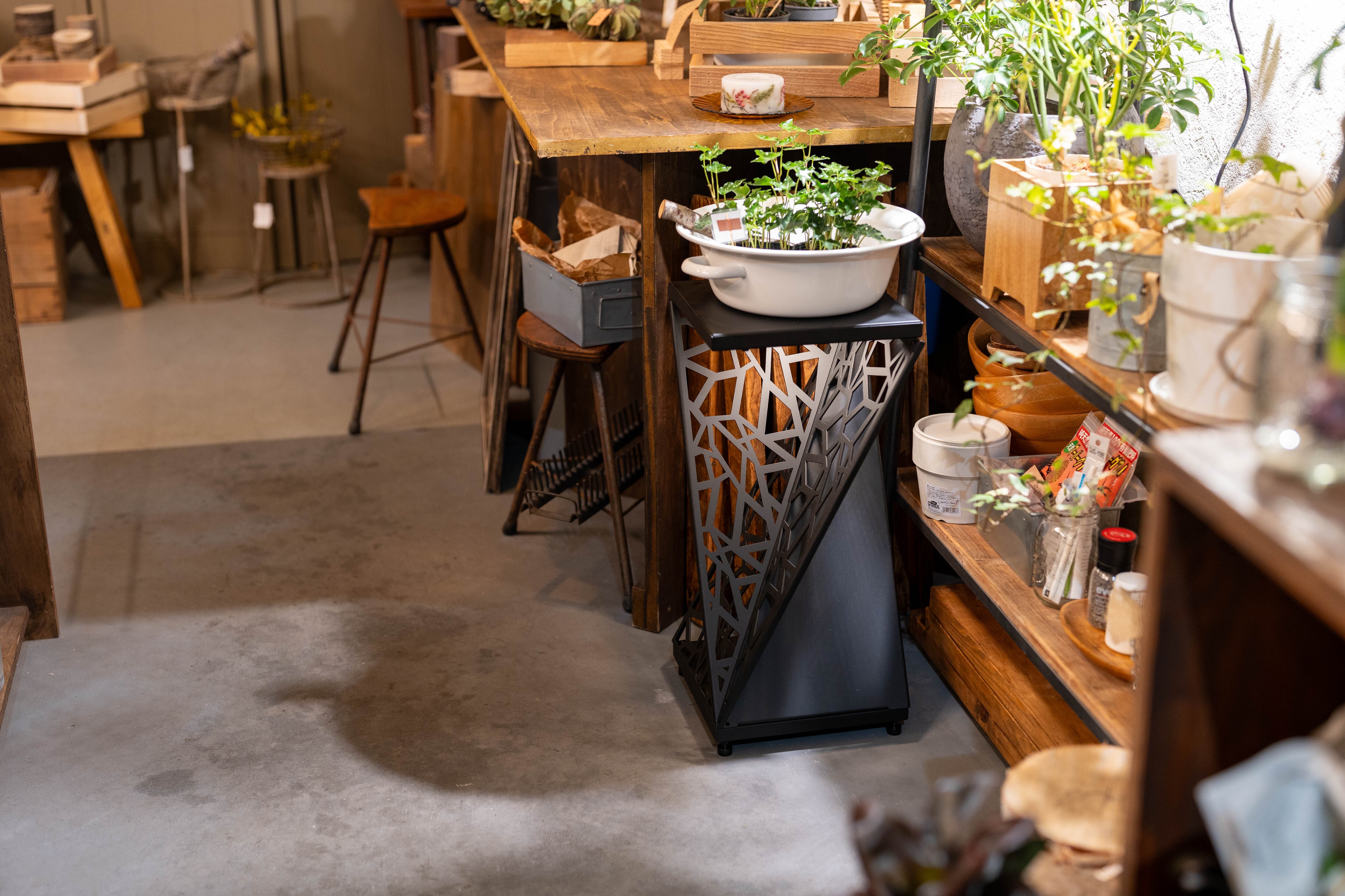 1/f SPACEを象徴する直線柄を全面にデザインしたフラワースタンド